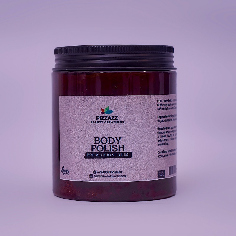 Brightening body scrub is a type of exfoliating treatment designed to enhance the radiance and luminosity of the skin. Additionally, our brightening scrub contains actives like (BHAs & AHAs) that helps to buff away mature skin cells, brighten and even out of complexion by reducing the appearance of dark spots, sun damage, discoloration, improving texture and circulation.